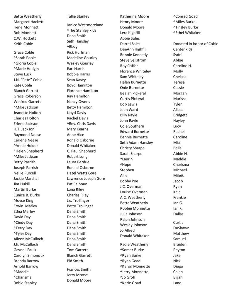 Names with an ^ are being honored by their friends and family and are still living