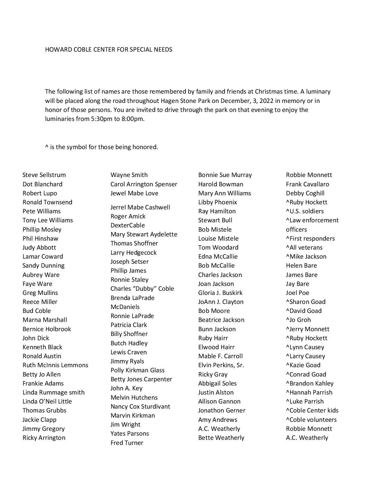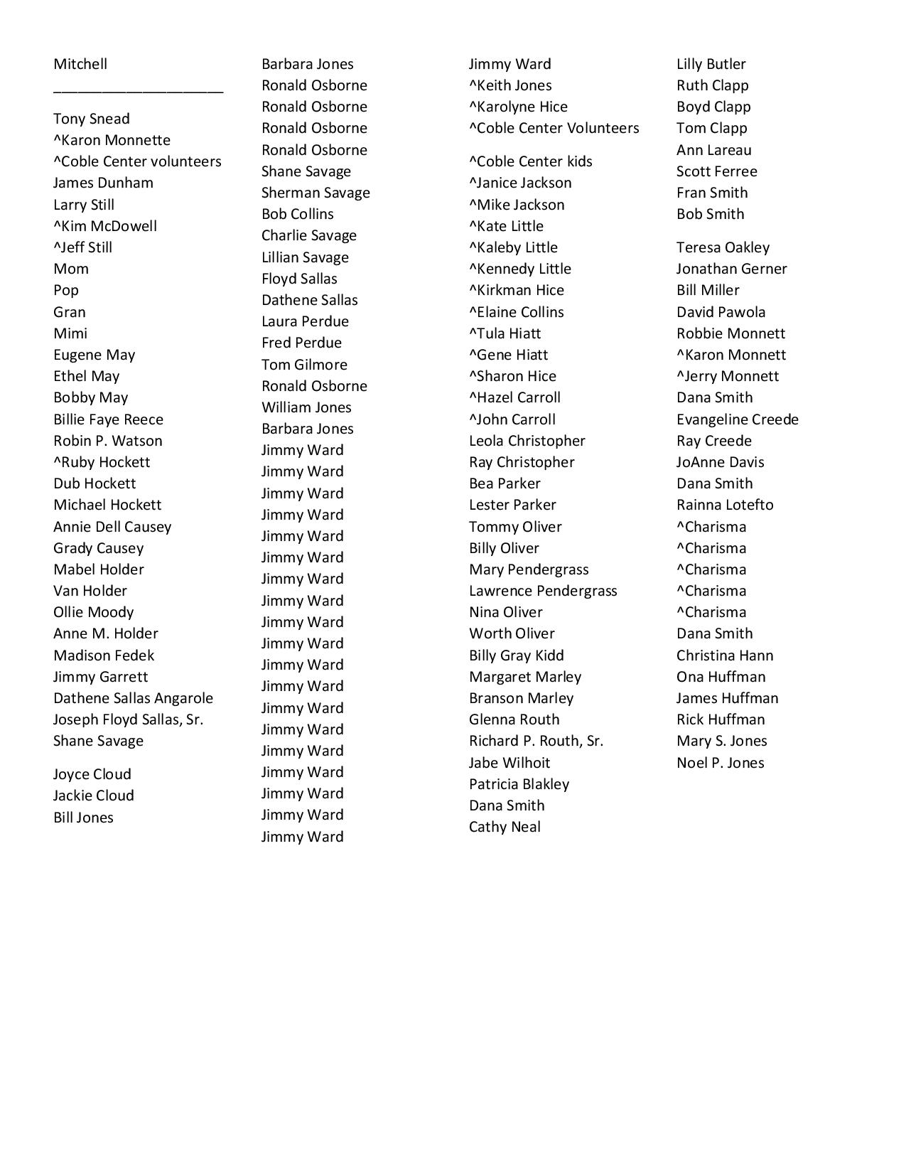 Names with an ^ are being honored by their friends and family and are still living